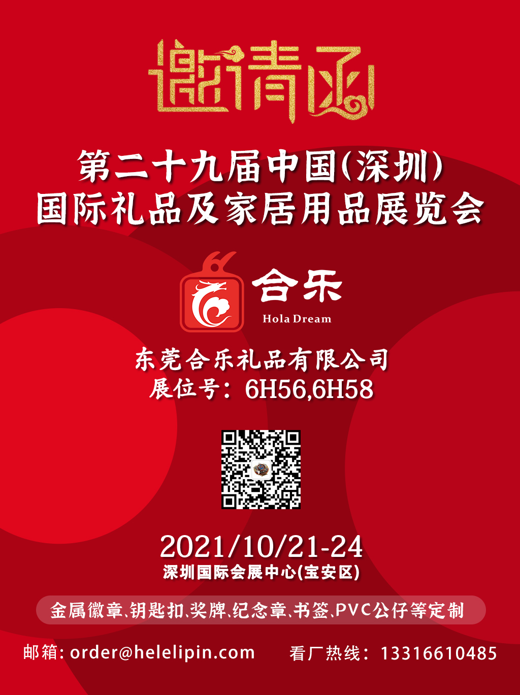 合樂禮品向各位新老客戶發(fā)出誠摯的邀請,期待與您相約在金秋十月的鵬城。合樂禮品依托集團發(fā)展,37年專業(yè)設(shè)計定制生產(chǎn)琺瑯徽章、紀念章、金屬勛章、獎牌、鑰匙扣、PVC軟質(zhì)公仔盲盒等工藝禮品。我們已經(jīng)準備好相關(guān)產(chǎn)品,并將竭誠為您解答各類產(chǎn)品專業(yè)技術(shù)問題和疑惑。您可以看到我們的新產(chǎn)品與服務(wù)領(lǐng)域,了解到我們的工廠規(guī)模與實力,感受到我們的服務(wù)熱情。